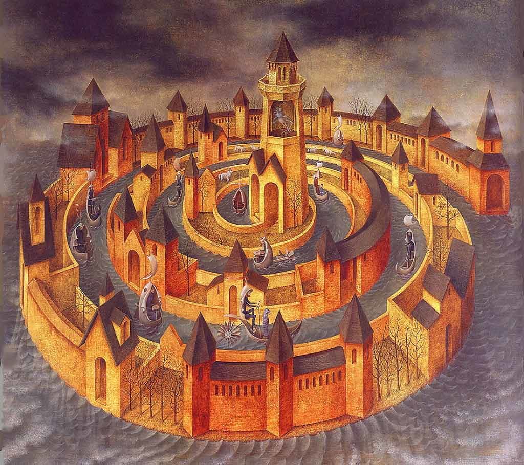«Con unas cajitas, de mis antidepresivos vacíos, hice unas casas. Esto después se hizo un pueblo y despues una ciudad… Concebí una sociedad imaginaria, del futuro, cruel, diferente, absurda, hostil, en la que está prohibida la música y el humano es un ser confundido y desamparado que aceptó lo absurdo como normal y lo normal como utopía, que pugna por encontrar un sentido a su camino lleno de dolorosos disparates.»